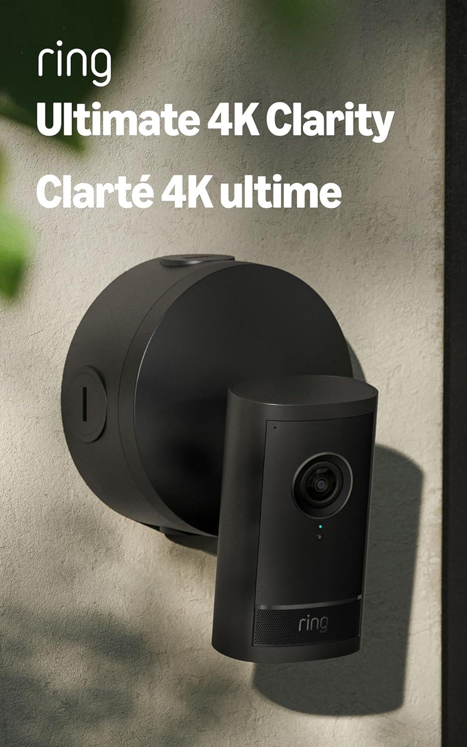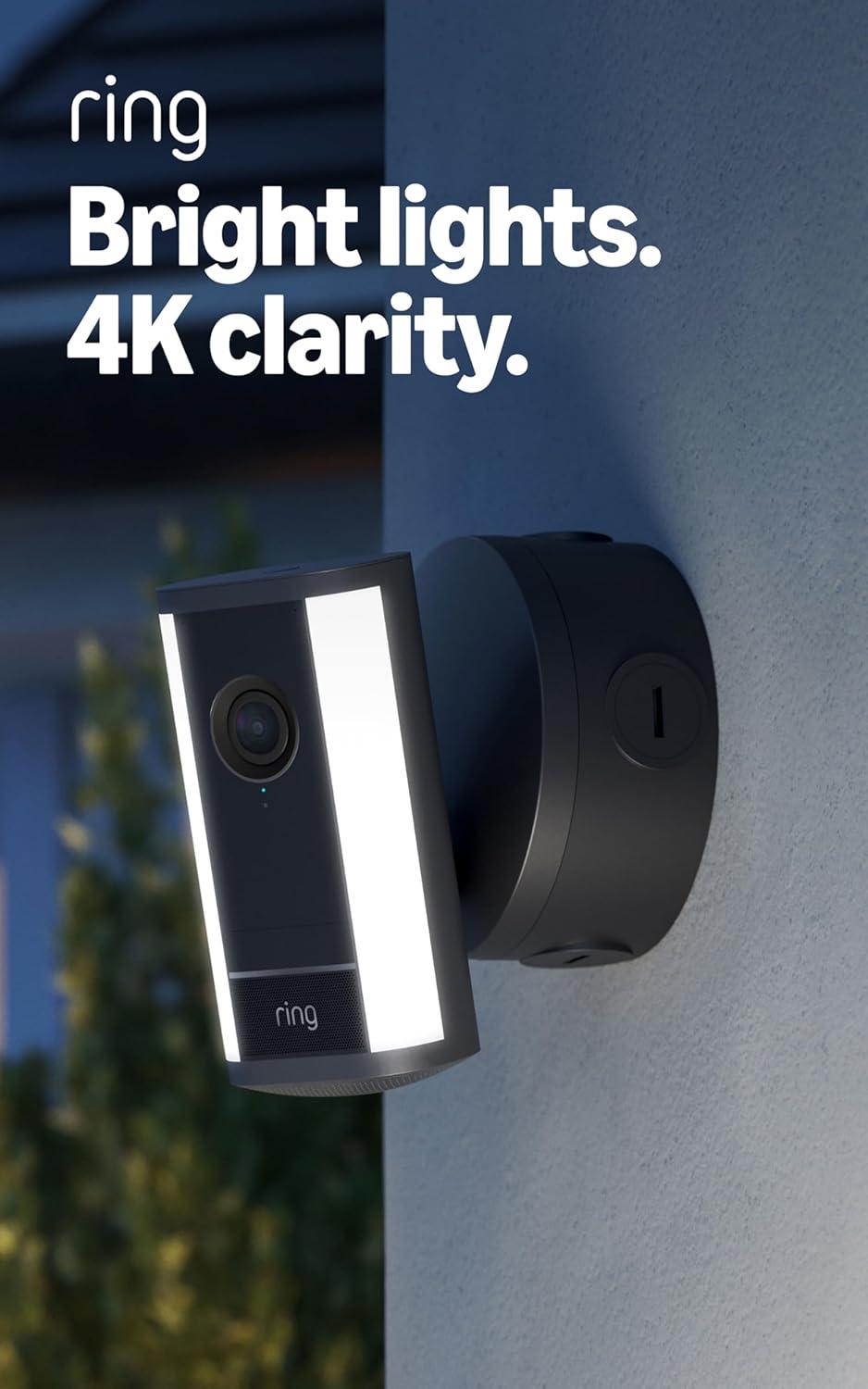 Ring Spotlight Cam Pro, Power over Ethernet (Newest Model) — Retinal 4K with wide-angle video, 10x Enhanced Zoom, and 600 Lumen Spotlights, Black(Black)