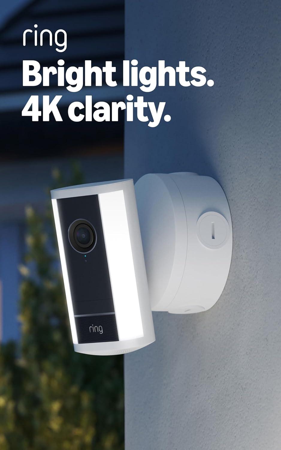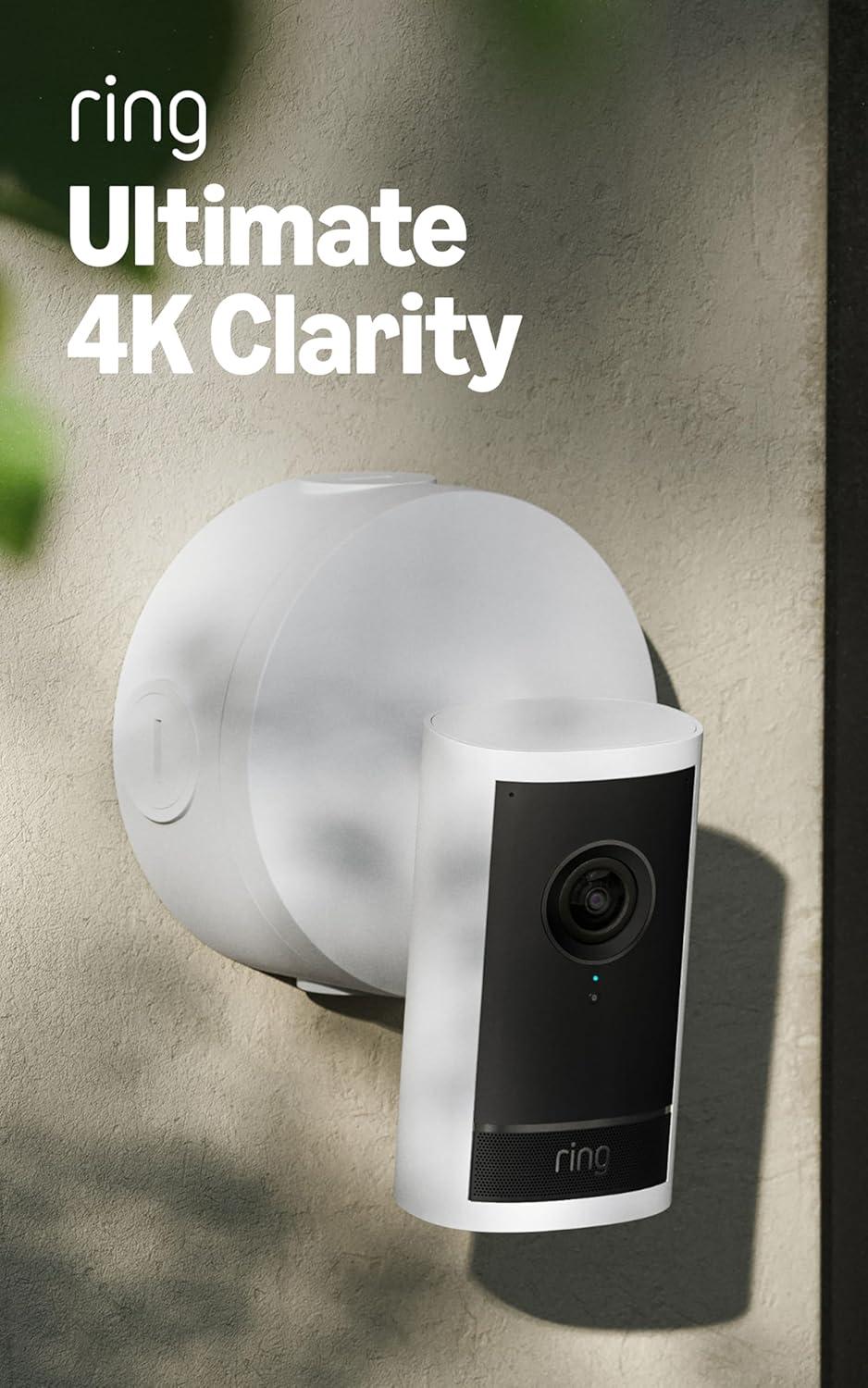 Ring Spotlight Cam Pro, Power over Ethernet (Newest Model) — Retinal 4K with wide-angle video, 10x Enhanced Zoom, and 600 Lumen Spotlights, Black(White)