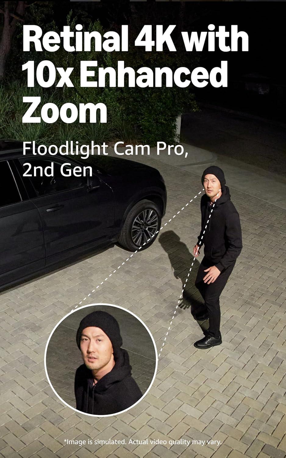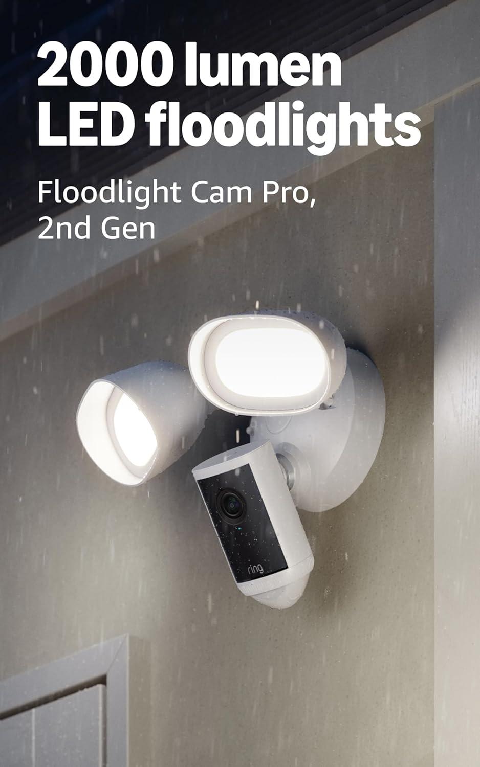 • Ring Floodlight Cam Wired Pro with Bird’s Eye View and 3D Motion Detection, White(Black)