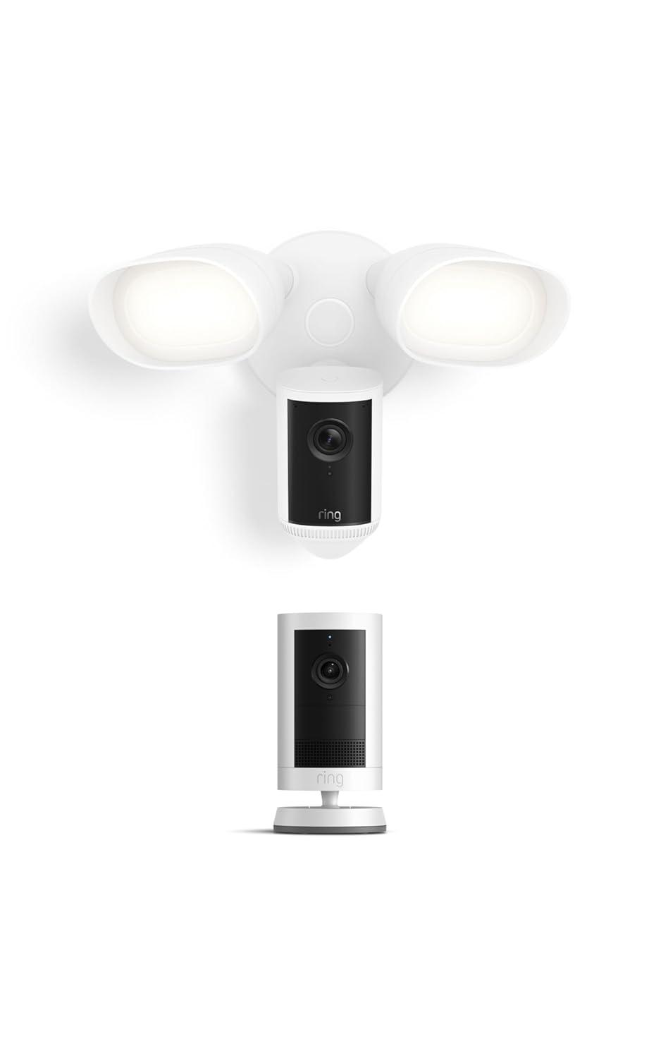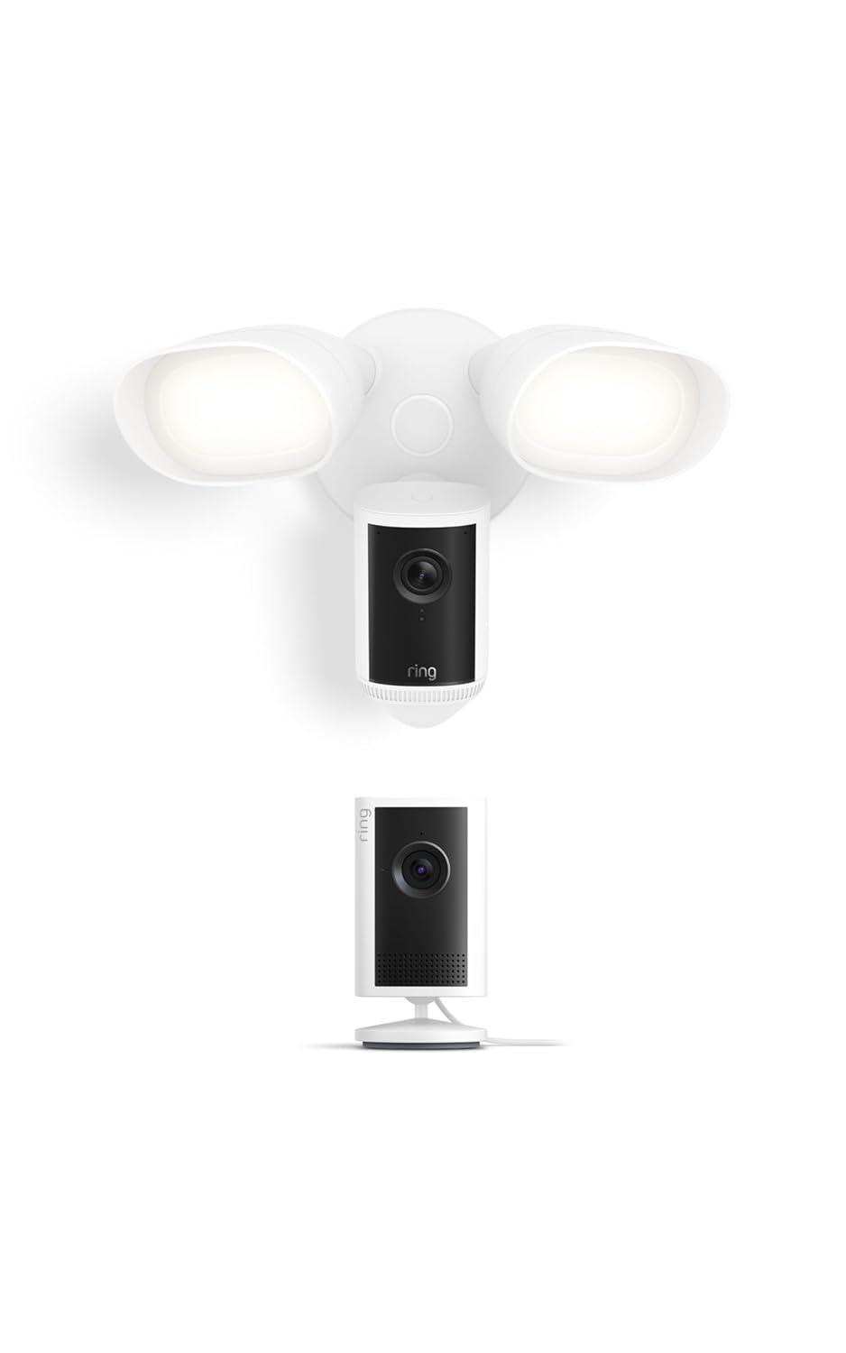 • Ring Floodlight Cam Plus with Ring Spotlight Cam Plus, Plug-In White