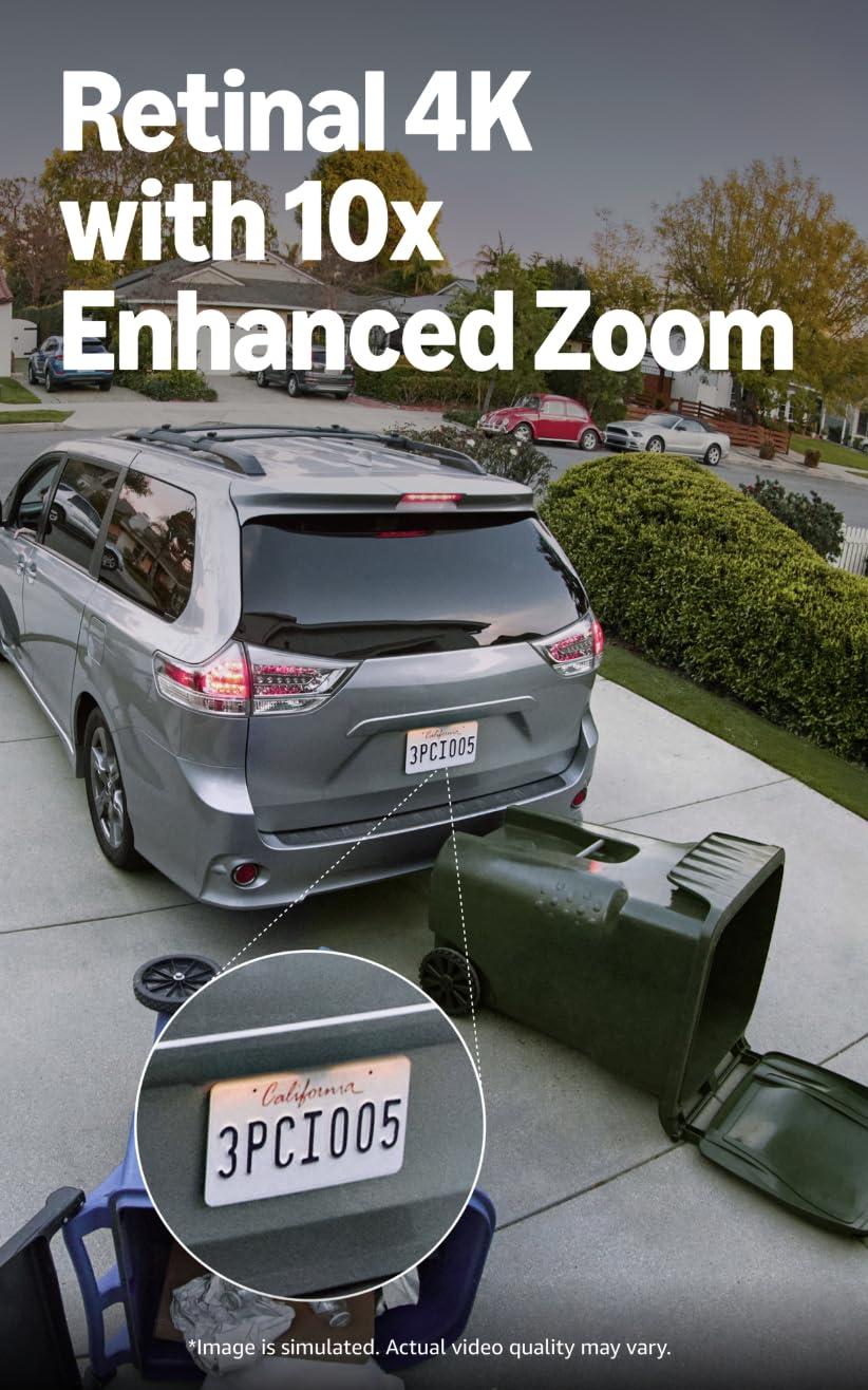 Ring Spotlight Cam Pro, Plug-in (Newest Model) — Retinal 4K with wide-angle video, 10x Enhanced Zoom, and 600 Lumen Spotlights, White(Black)