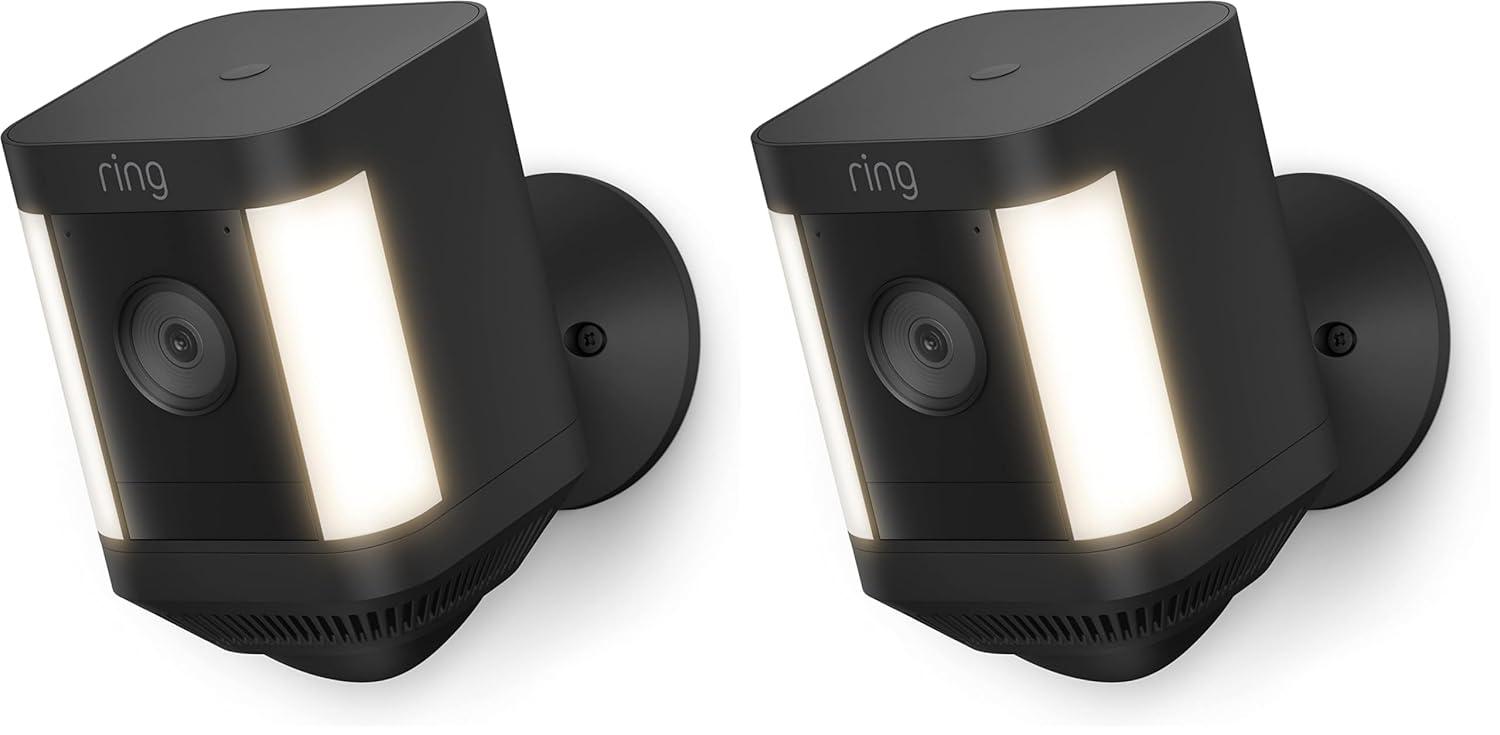 Ring Spotlight Cam Plus, Battery | Home or business security with HD video, Two-Way Talk, Color Night Vision, and Security Siren (2022 release) | 2-pack | White(Black)